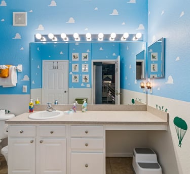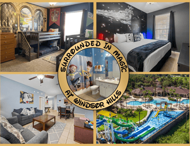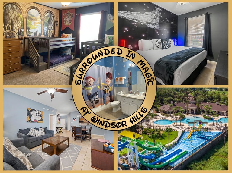 Surround yourself in our bright and spacious Disney & Universal Studios themed 3-bedroom condo at the renowned Windsor Hills Resort just 3 miles from Disney and close to shopping and restaurants.